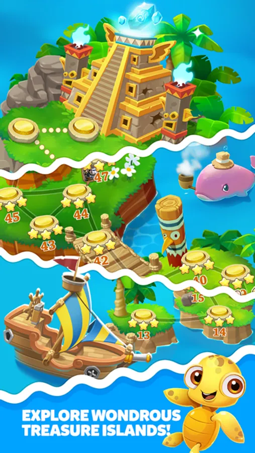 Bubble Incredible will have you addicted from the first bubble! Starting out fresh as novice adventurers and treasure hunters, Fortune, the cheerful and witty bunny, and Nate, the brave and formidable panther, explore the scenic world of Bubble Incredible. The duo takes on a mission to save golden turtles trapped in bubbles, who in return, promise to help them find the legendary treasure. Playing Bubble Incredible, you will need to work your strategy and aim carefully to shoot bubbles through a powerful bubble cannon armed with various special powers and achieve mission goals. Join the courageous partners in this exciting quest and sail on!