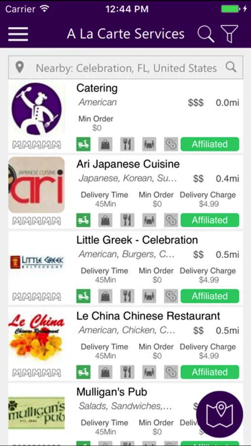 1. On your smart phone, open the Celebration A La Carte App and choose your favorite restaurant and place your order.