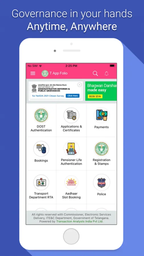 T App is available as an Anytime, Anywhere mobile service delivery gateway for all Government Departments.
