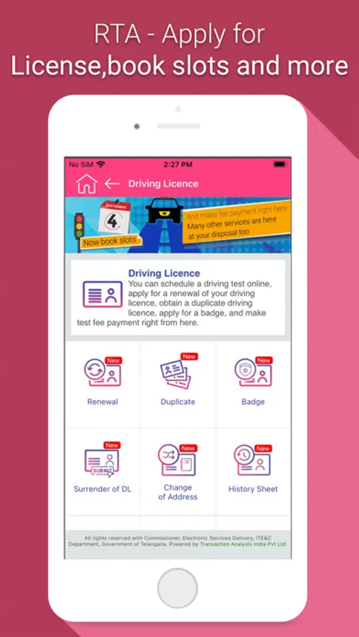 2. RTA Applications: Driving License, Learner License, Duplicate License etc
