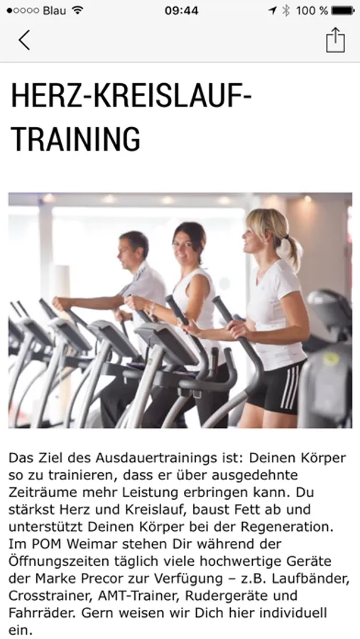 Mit der POM Weimar-App hast Du Dein Rücken- & Gesundheitszentrum in Weimar immer in der Hosentasche. Informationen, wie z.B. das aktuelle Kursprogramm, die nächsten Events, Clubfotos und Angebote sind immer dabei und Du erhältst alle News per Push Nachricht.