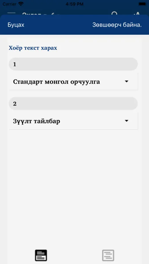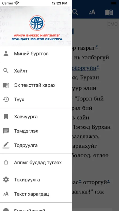 Тус апп дээр үг хэллэг хайх, эх тексттэй зэрэгцүүлэн унших, хавчуурга, тэмдэглэл, тодруулга хийх гээд олон үйлдлийг хийж болно.
