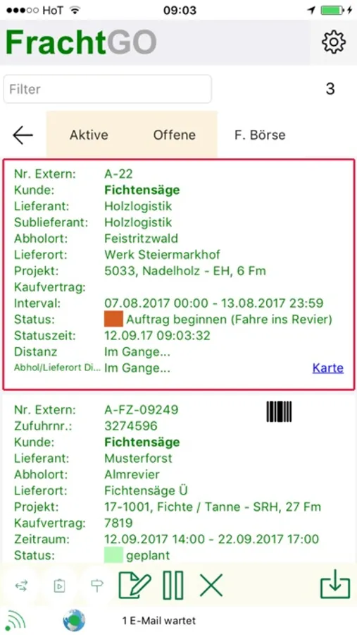Das App wird in eine Felix Logistikzentrale eingebunden und kann disponierte Transportaufträge empfangen und abwickeln.
