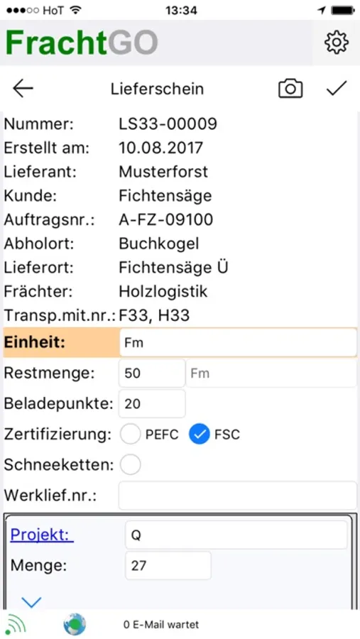 • Erstellen und Versenden von Lieferscheinen mit Fotodokumentation