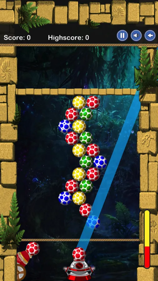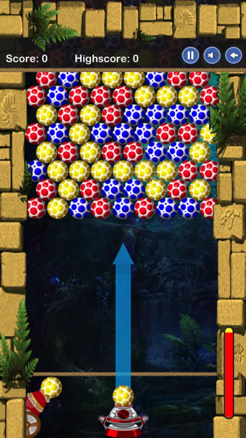 There are many colorful eggs from the top of screen. They will move down to the bottom where you are located to shoot them. You must to use slingshot to shoot to shoot your own egg up at them. When your egg matches with three or more same color eggs, they will burst. If the eggs down to the bottom of screen, the screen will be crushed. The game will end.