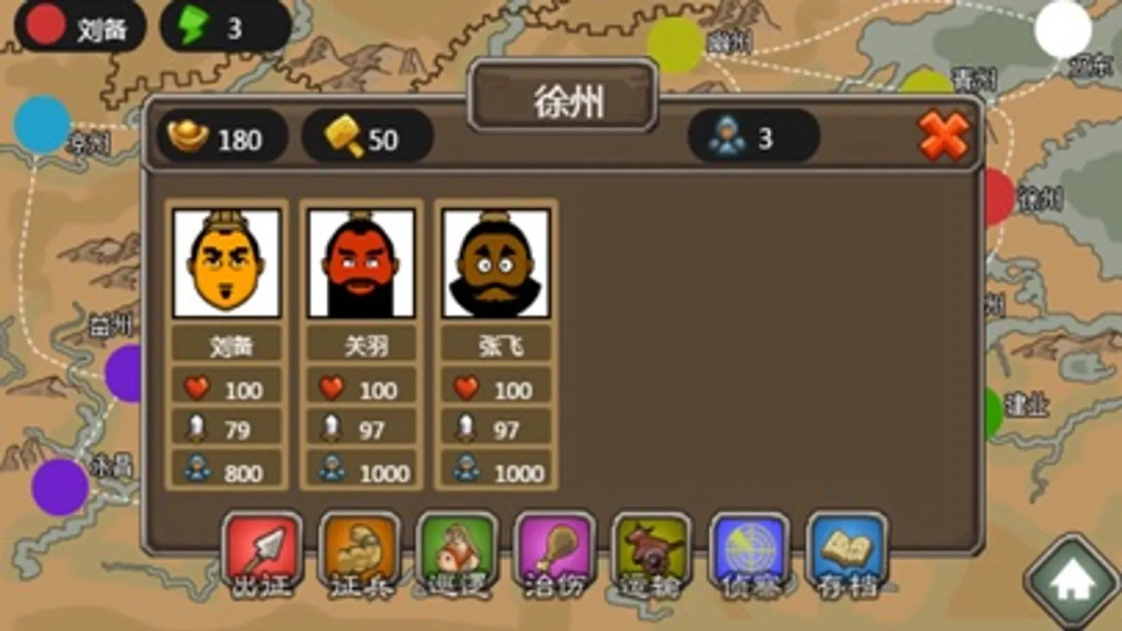 玩家在游戏中是一个运筹帷幄,决胜千里的三国时代的首领,拥有城池和武将,通过调兵遣将与其他军团进行军事较量,游戏目标是占领所有城池,一统中原。