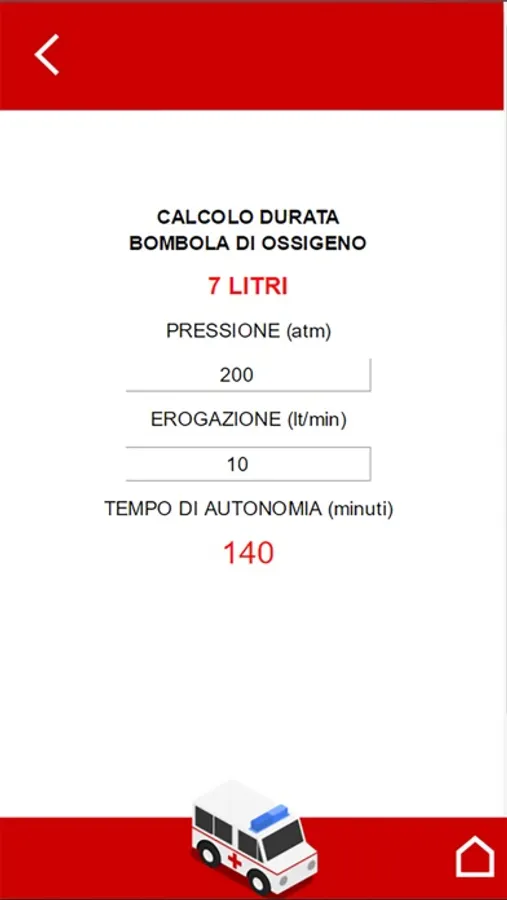 Con questa app è possibile calcolare l'autonomia di una bombola di ossigeno a seconda della quantità di litri al minuto erogati.