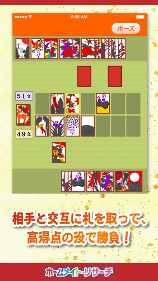 日本で古来より遊ばれている花札を使った伝統的なカードゲーム。