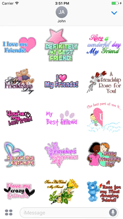 This app offers you a series of Friendship Day stickers for your chat. Get amazing animated Friendship Day stickers for iMessage on iOS phone and share the stickers on Facebook, Whatsapp, Messenger and many more social networks.