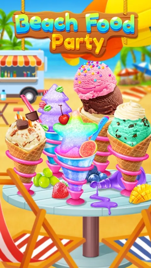 Summer Vacation is here. It's time for a fun-filled day with a RAINBOW COLORED Beach Party. What type of food is the best for a hot summer beach party? Yep! It must be the sweet ICE CREAM and the frozen SNOW CONES! Come on down and make sure that this beach party is a RAINBOW COLORED ONE. Make all sorts of delicious frozen treats. Make sure you host the BEST beachside party ever this year!