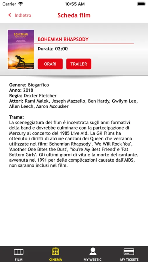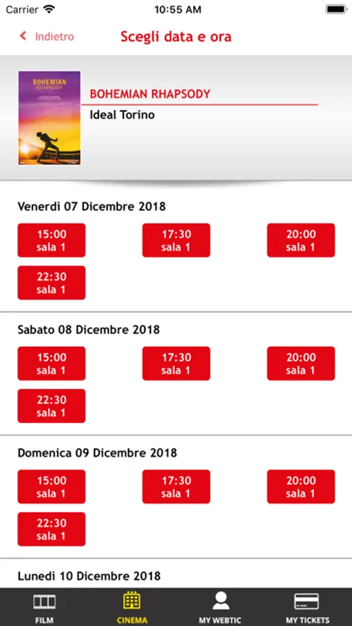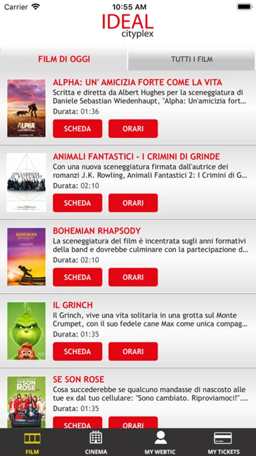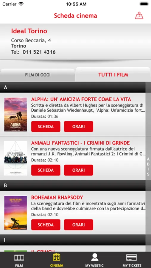 Applicazione di Crea Informatica, per l'acquisto e la prenotazione dei posti nel cinema Ideal Cityplex di Torino.