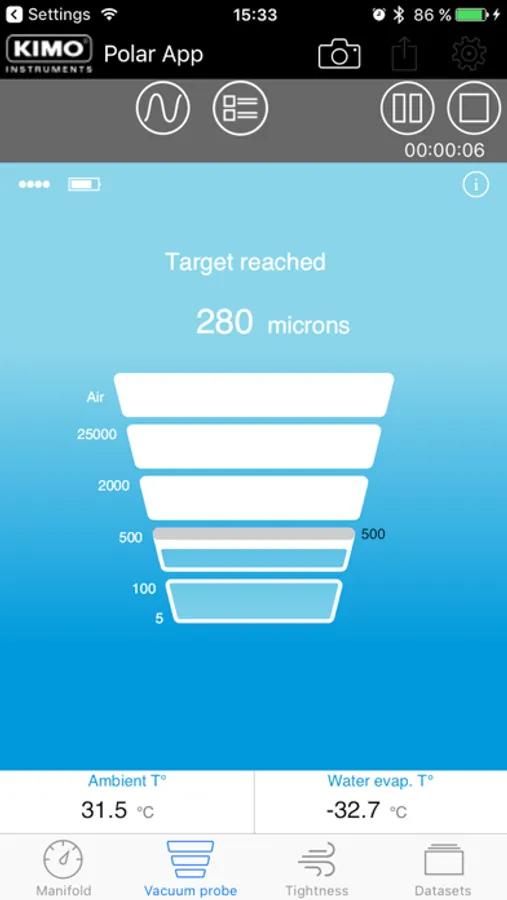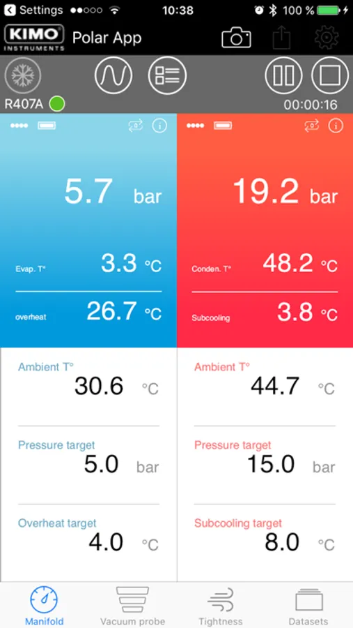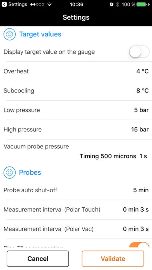 Polar App is an user friendly application allowing Polar Touch and Polar Vac real time data reading and recording. Saving you time, this All-in-one application calculate superheat and subcooling with targets configuration, visual alarm for vacuum target reached, tightness test and many more functions that make Polar App your indispensable day to day tool.