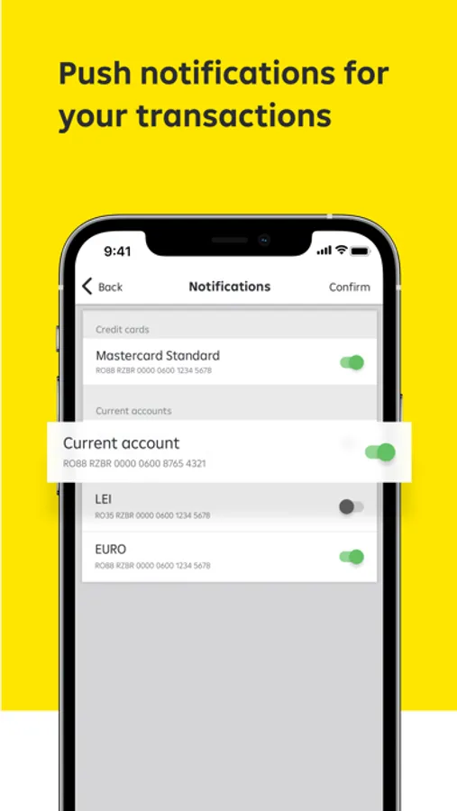 • Push notifications: Receive instant updates on money going in or out of your current accounts or payments made with your card.