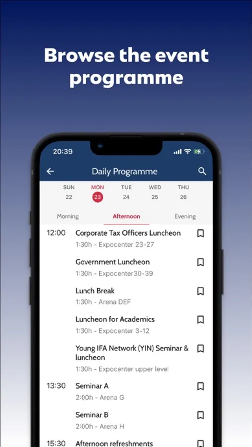 In the IFA App you will find information about its activities, branches and publications. In the congress part of the IFA App can browse the complete scientific programme by days, participate in seminars and sessions, find speakers and contact other participants by e-mail. You can locate rooms and exhibitor stands on the floor plan receive daily news and much more. This app is provided by the International Fiscal Association.