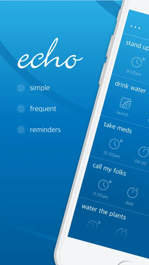 Want to be reminded to regularly stand up and move? Be alerted to drink water every day? Take walks on weekends? Or call Mom on Sunday? Echo was born out of necessity.