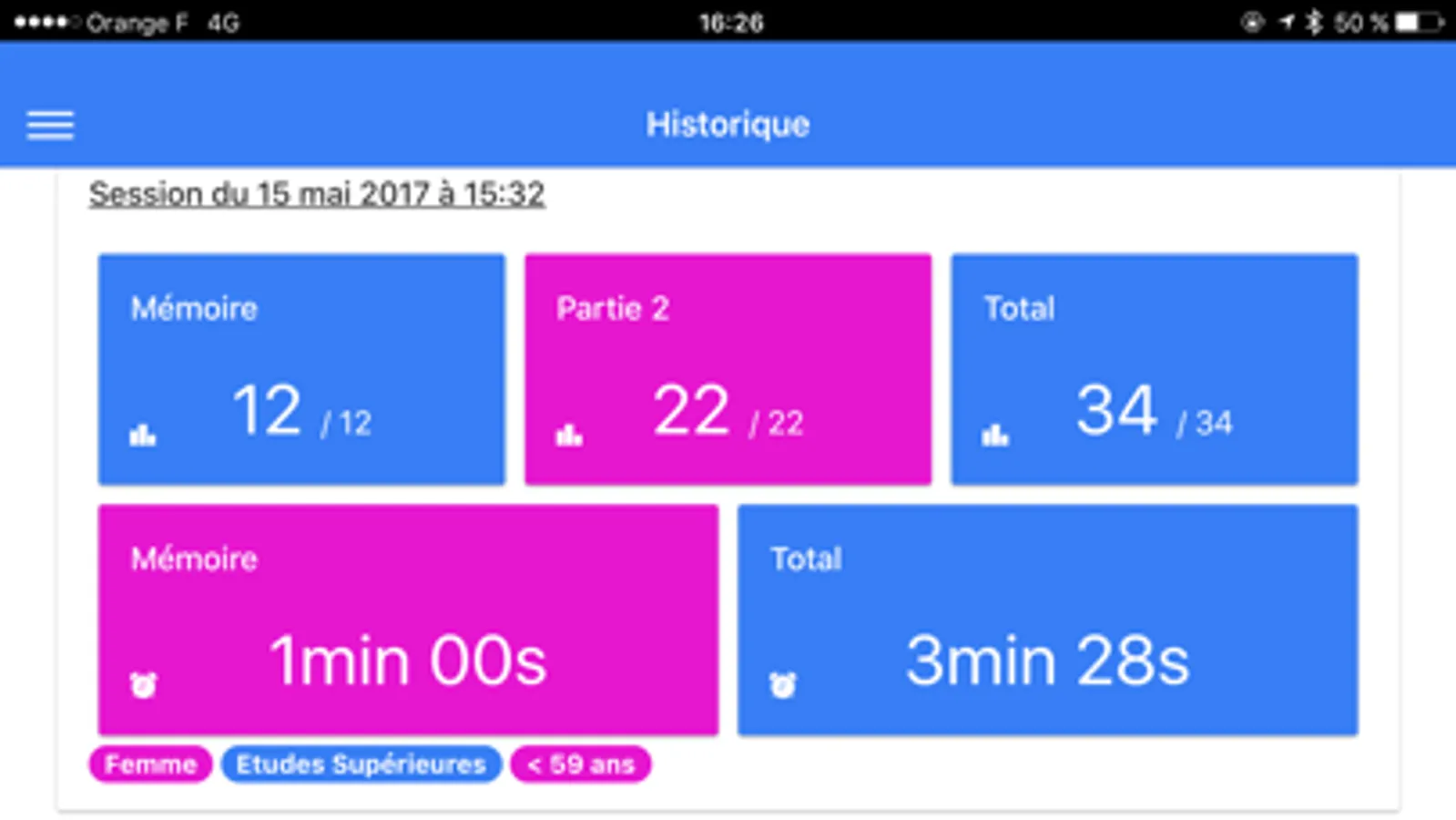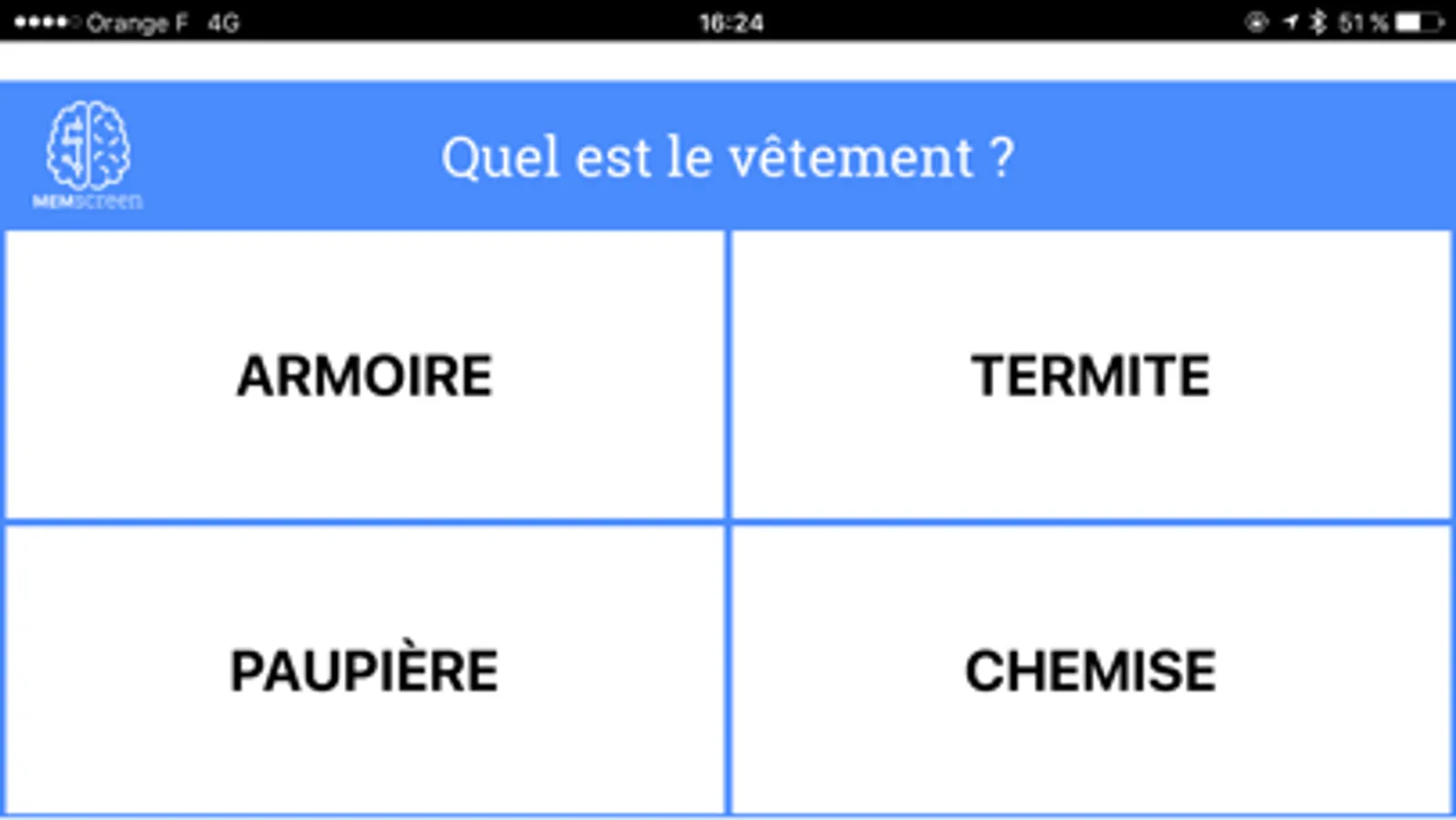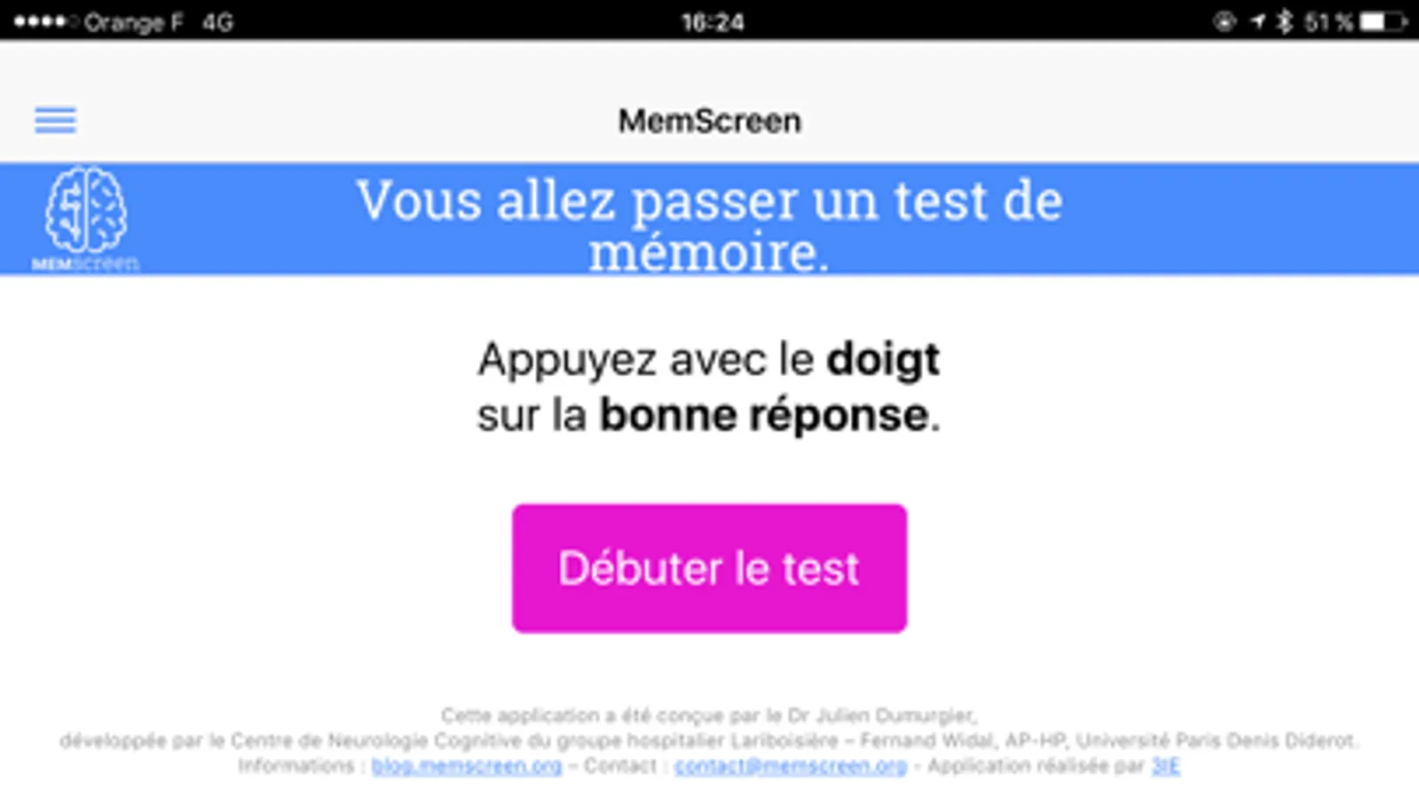 MemScreen est une application destinée aux professionnels de santé pour évaluer la mémoire des sujets ayant une plainte cognitive.