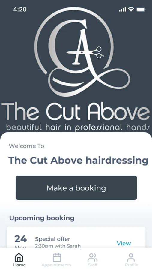 The The Cut Above hairdressing app makes booking your appointments and managing your loyalty points even easier. You're just a few taps away from feeling good and looking great!