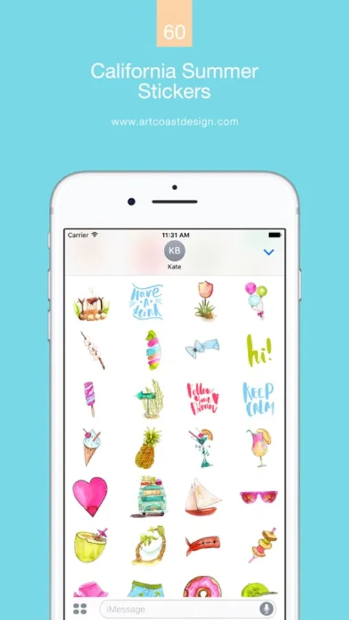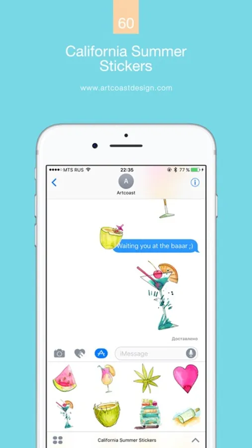 Summer stickers with cocktails, palm trees, fruits and calligraphic inscriptions. Stickers give love and warmth of hot days from sunny California.