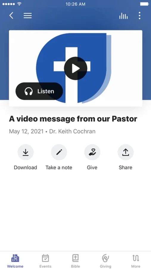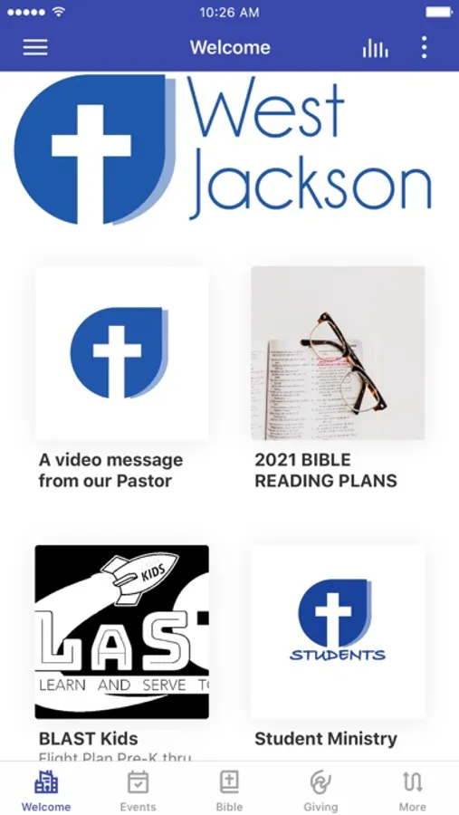 The app for West Jackson Street Baptist Church in Tupelo, Mississippi