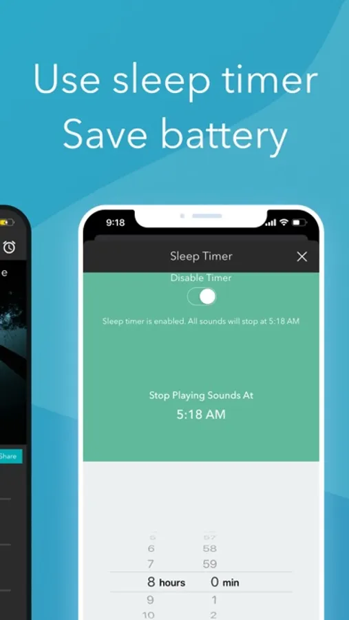Sleep timer works in background mode too. It sets the sounds to turn off automatically to save battery life.