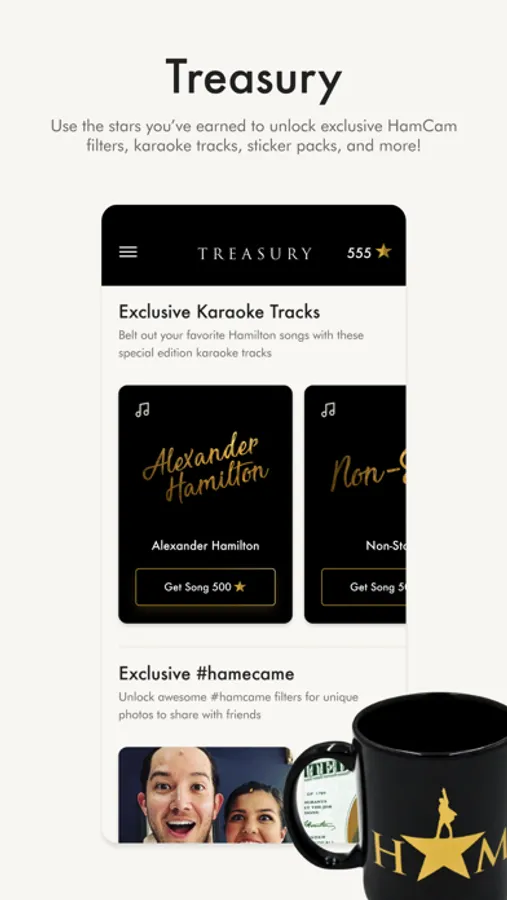 Use the stars you’ve earned to unlock personalized videos from the cast, exclusive HamCam filters, karaoke tracks, sticker packs, props from the show, and more!