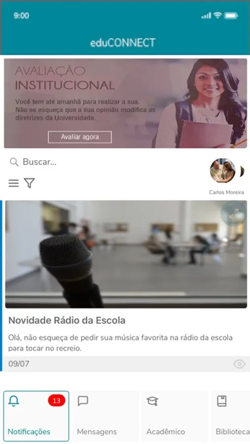 Ponto único de comunicação institucional, serviços acadêmicos e financeiros. Alunos e família têm acesso a comunicados, avisos, lembretes, notas, frequência, extrato financeiro, ocorrências, quadro de horários e muito mais. Professores podem lançar notas, fazer chamada e registrar o conteúdo das aulas.