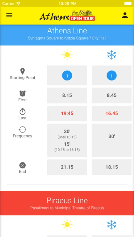 Athens Open Tour operates all year round. Our Athens, Piraeus, Riviera & Beaches tours run daily with a 15-30 minute frequency time schedule from 08.00 until 20.00 during the summer season April to November and from 09.00 until 17.45 during the winter season December to March. With our 90 minute Athens Route Terminal located at Syntagma Square, our 60 minute Piraeus Route starting point at the Cruise Ships Terminal and our Interchange bus stop at the Acropolis, our tourist-friendly city tours ideally cover all the major sights and attractions.
