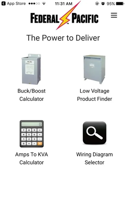 The Federal Pacific App provides a quick method to find the Federal Pacific transformer you need. A handy amps/kVA calculator and a Buck-Boost Calculator/Selector.