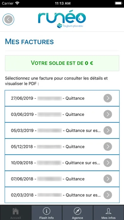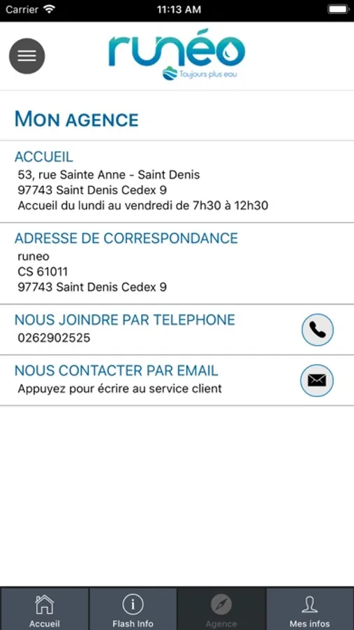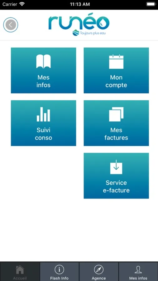Avec l'application runéo, consultez sur votre mobile les données de votre compte client, régler vos factures, relever l'index de votre compteur et signaler les fuites sur le réseau.