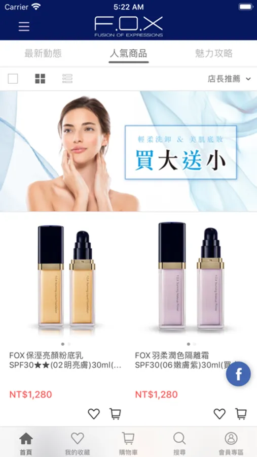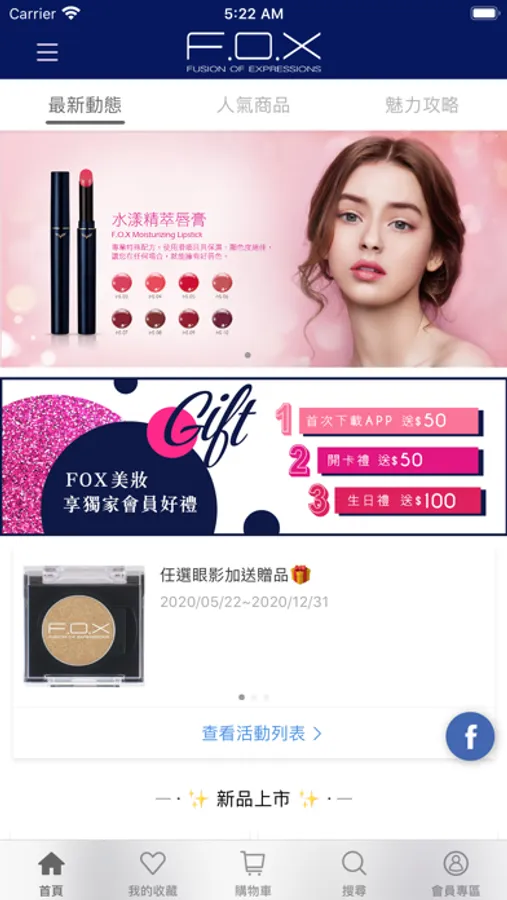掌握時下最流行的彩妝保養資訊,快下載 F.O.X 美妝 購物APP,