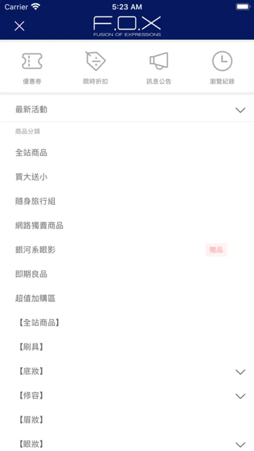 1. 即時推播 : F.O.X小編推薦最新商品、限時優惠、美妝訊息第一手掌握!