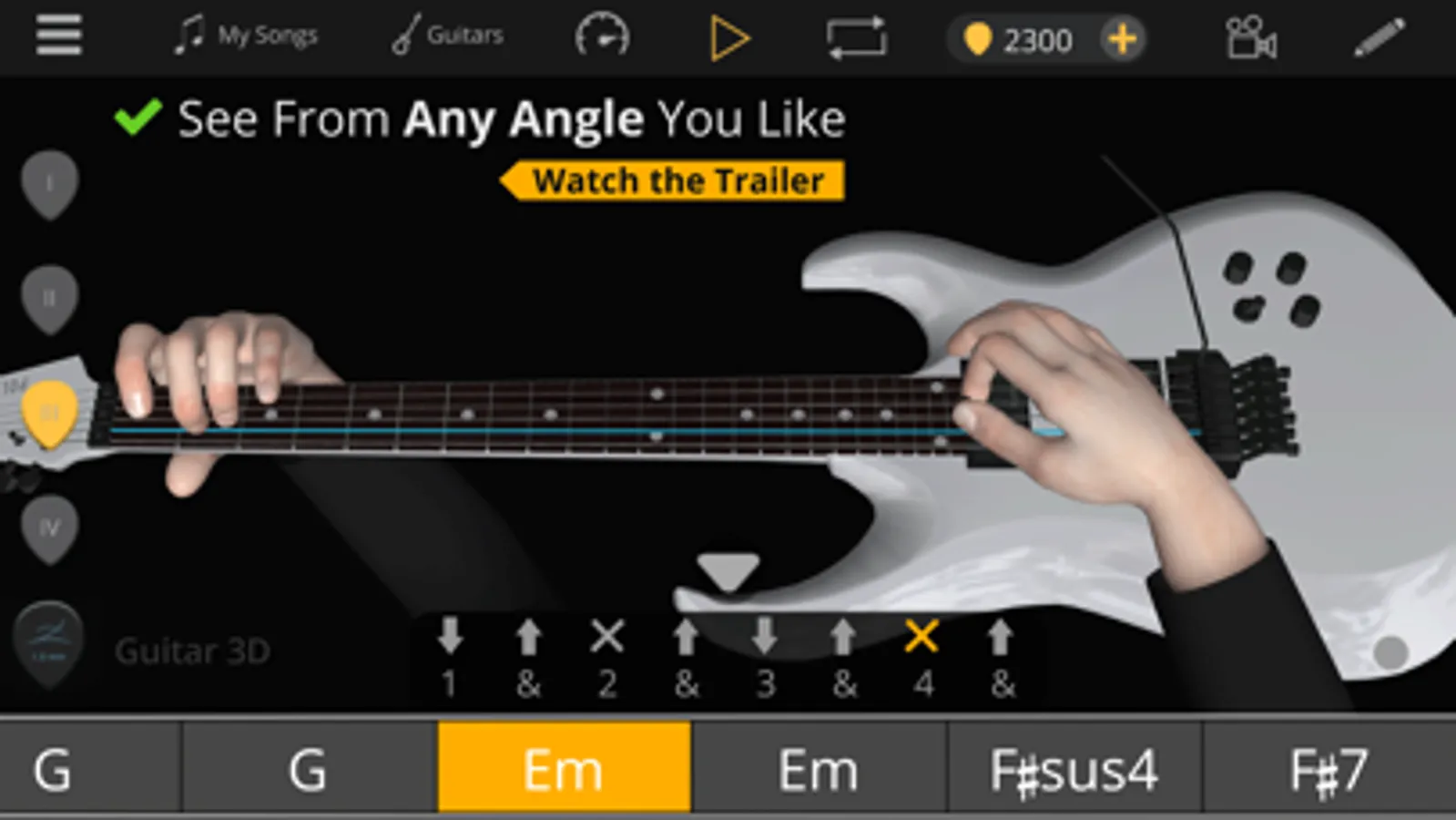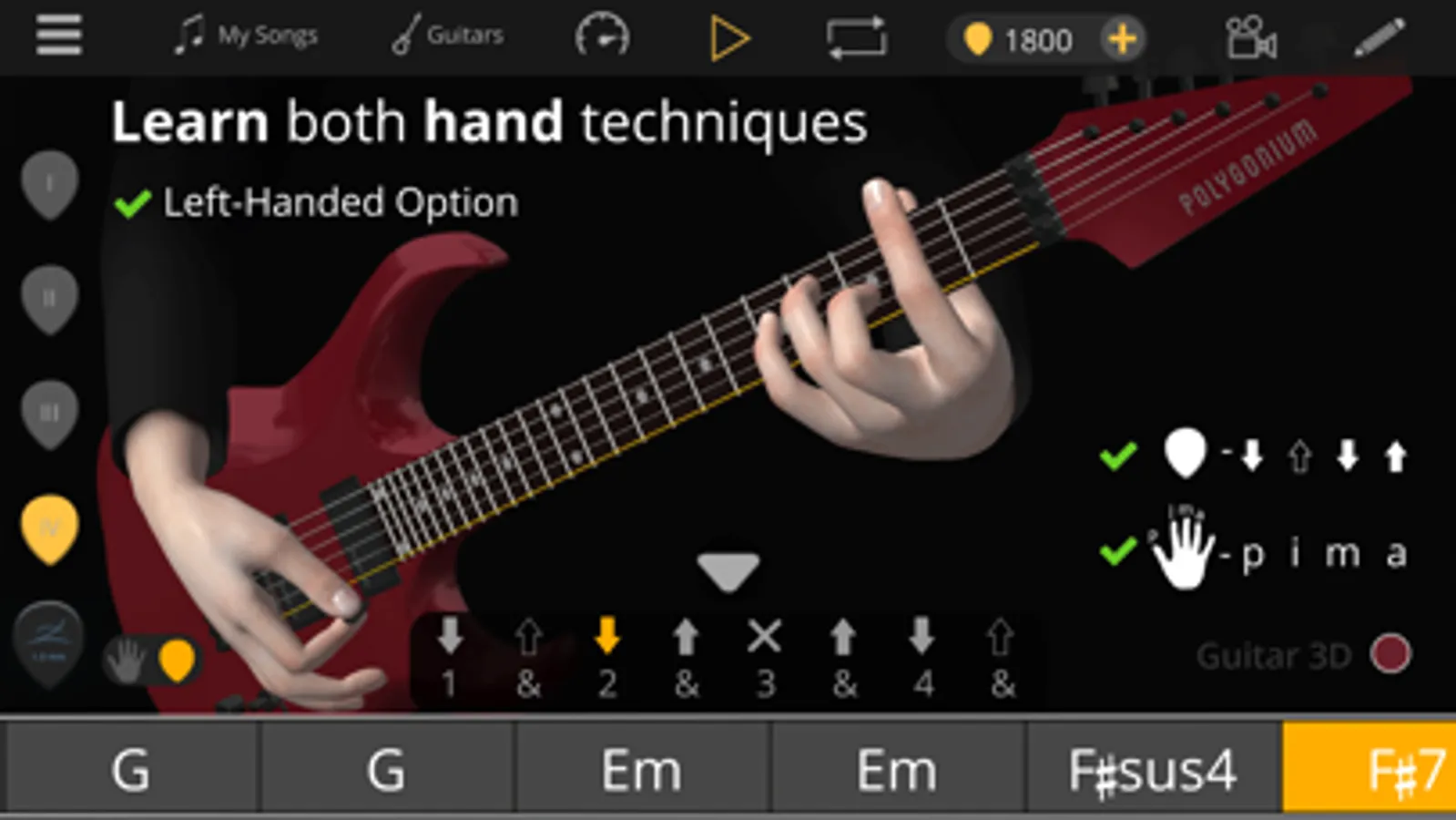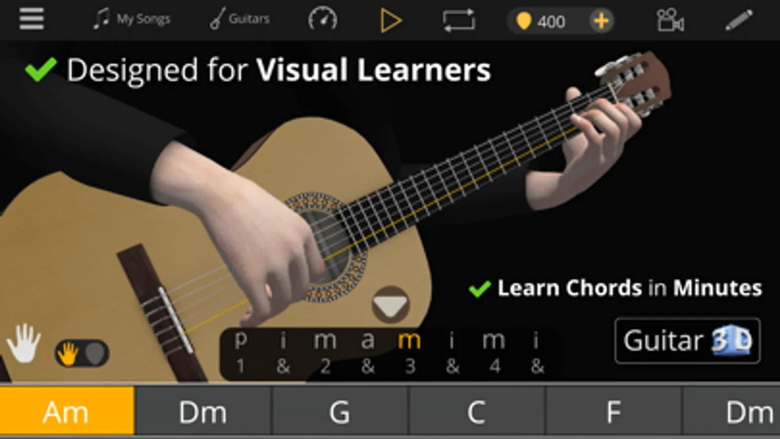Learn how to play guitar chords, strumming and fingerpicking simply with this 3D ultimate guitar learning app just in minutes.