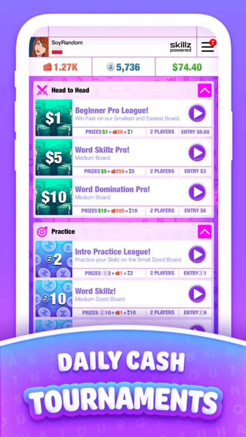Challenge people around the world with SKILLZ™, a competition platform complete with leaderboards, trophies, cash or virtual currency prizes, and an amazing loyalty program that rewards you just for playing! SKILLZ™: eSports for Everyone.