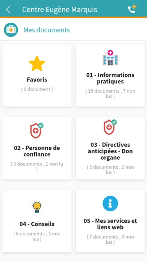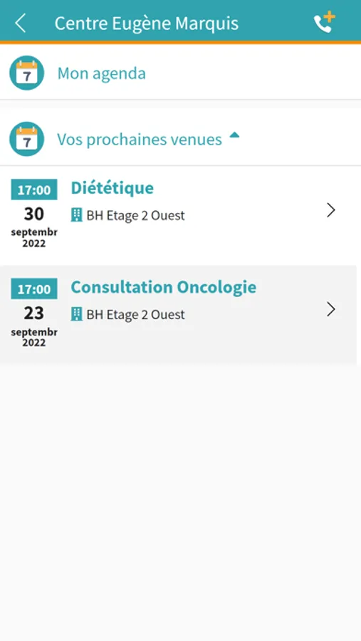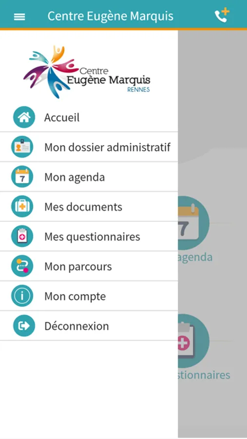- Agenda : pour avoir accès à vos prochains rendez-vous médicaux au Centre Eugène Marquis.