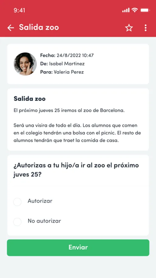 - Gestión flexible de permisos para el personal del centro, profesores, etc. Decide quién puede enviar y a quién.