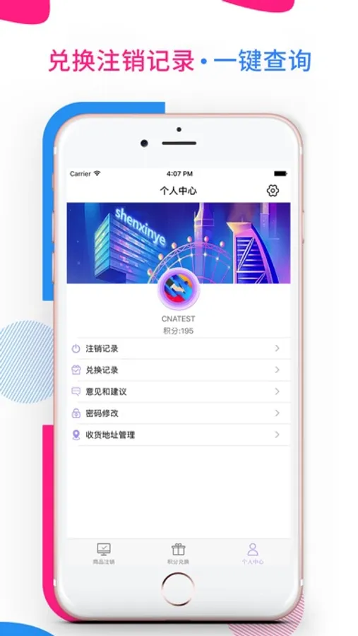3.设置界面,查看积分兑换记录,注销记录,实时掌握店员的积分情况