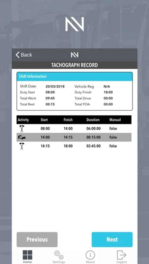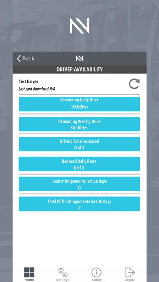 The Tachograph module allows drivers to view their tachograph records, see their availability to work/drive and view their infringements.