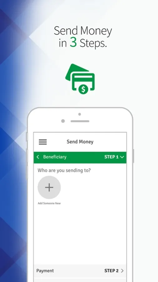 - Add/edit your sending methods. Use card scan to add credit and debit cards easily.