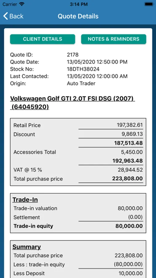 EasySystems Mobile is an electronic quoting system which allows sales staff to action leads and send vehicle quotes and offer to purchases to their customers.