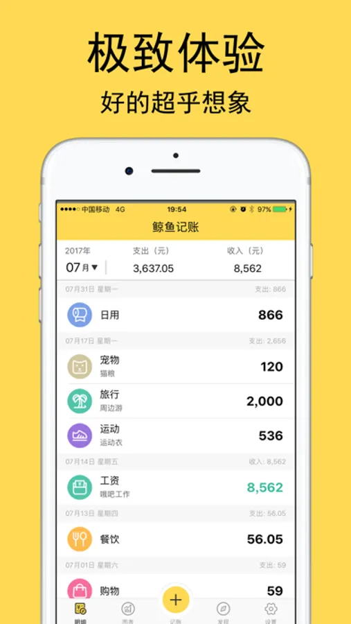 Whale accounting writers have many years of accounting habits, but the market of similar software, whether it is accounting process or product features, are too complex. Because they are not based on the needs of users to design products, but in order to achieve the company or the demands of investors. We want to do for everyone an intimate accounting software, only for you with cool! We abandoned the account system, not even their own server, all to facilitate the use of users as a starting point. Seemingly simple operation process behind, but through the chart function, to help you analyze the consumption situation, so that you can improve their own consumer behavior. Although accounting can not directly help you achieve financial freedom, but we believe that as long as you insist on accounting, and constantly improve their consumption situation, and actively cut costs, will be able to achieve financial freedom!