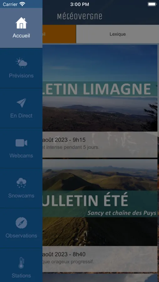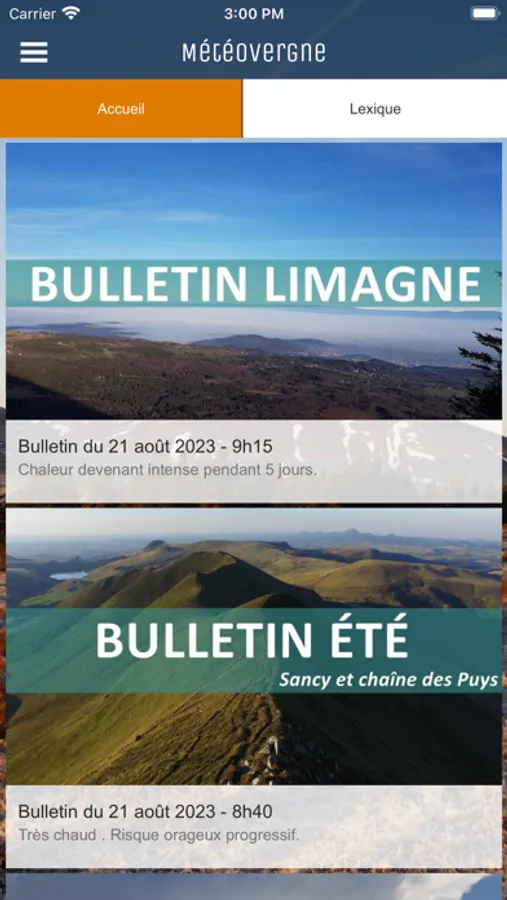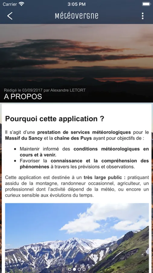 L’application Météovergne regroupe des services météorologiques pour le Massif du Sancy, la chaîne des Puys et la Limagne et a pour objectifs de :