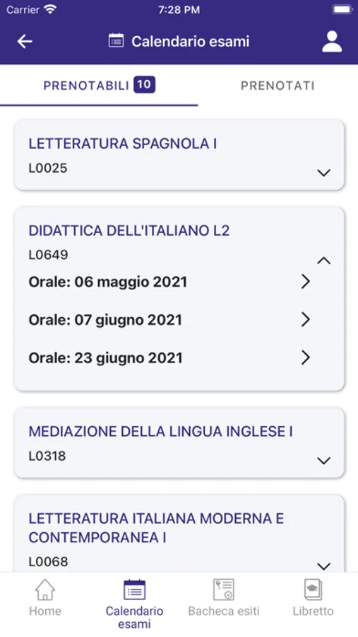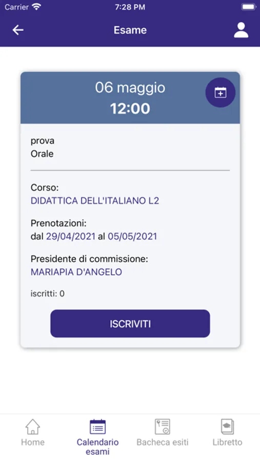 - iscriversi agli appelli e consultare il calendario esami