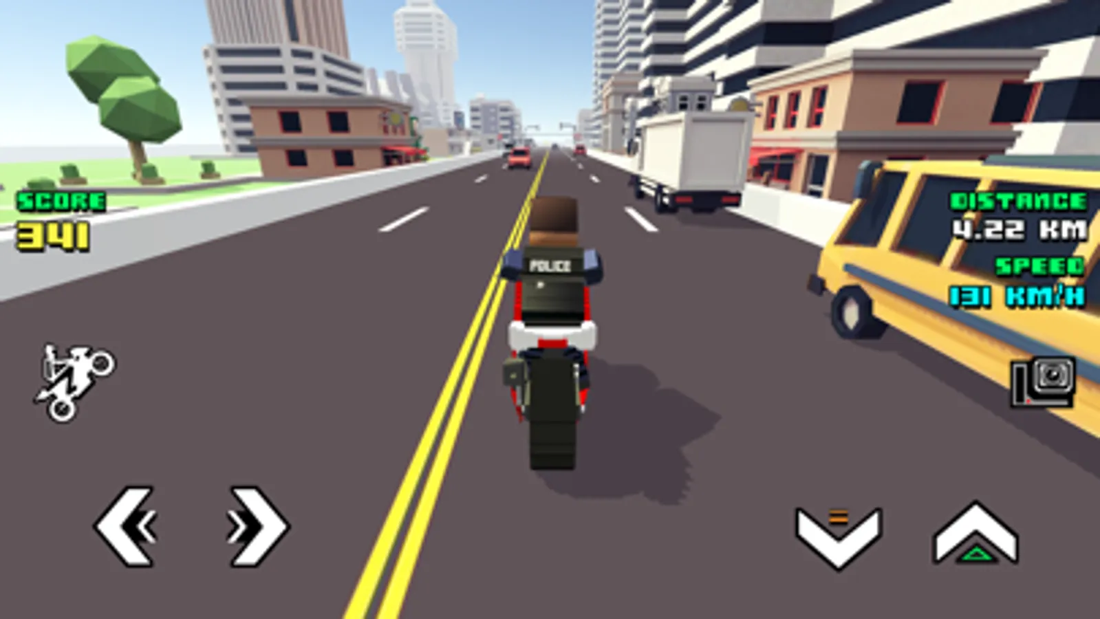- 8 types of motorbikes to choose from. Ride motocross, speeder or police motorbike. Latest update contains also scooter and powerful superbike.