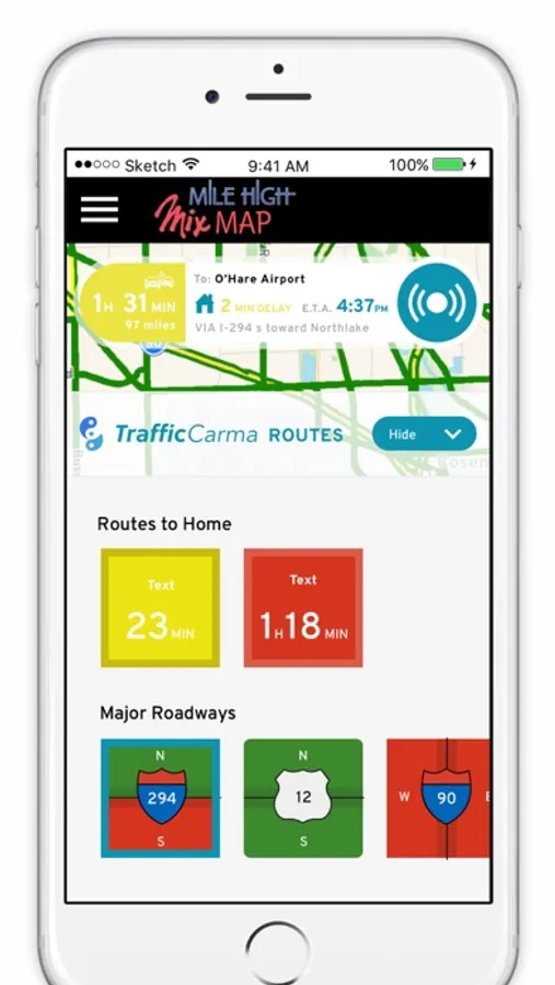 The Mile High Mix Map utilizes the cutting edge technology of TrafficCarma ™, a real-time traffic data engine that generates the most up-to-the-minute traffic and routing information from one of the world’s leading sources of traffic data.