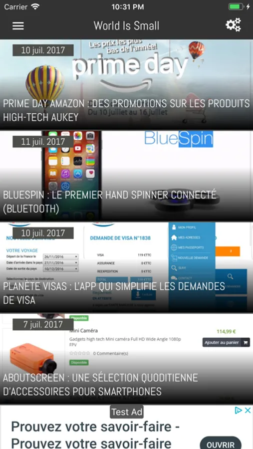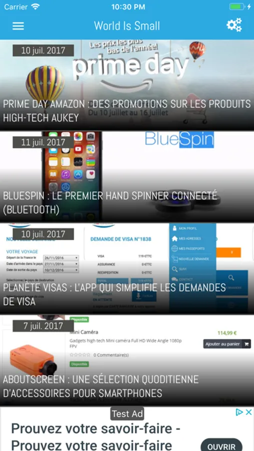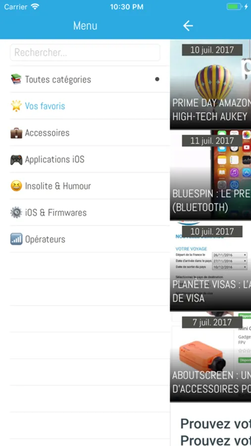 - Un accès à toutes les catégories du site Worldissmall.fr (Accessoires, Applications iOS, Insolite & Humour, iOS & Firmwares, Opérateurs)
