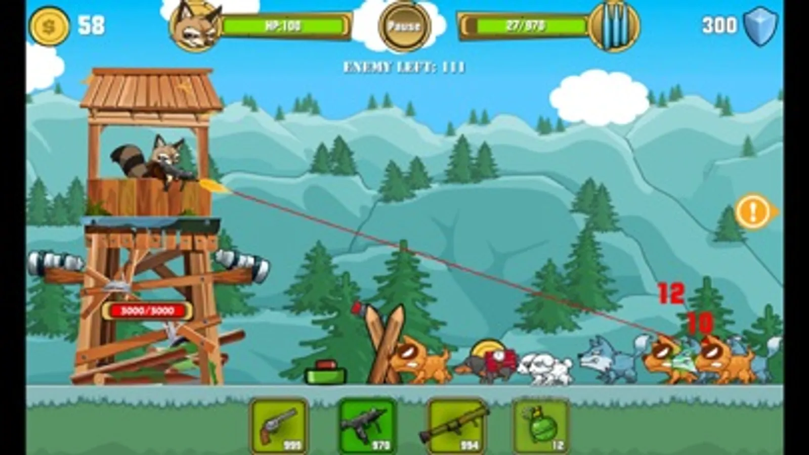 Protect yourself from attacking evil dogs! You are attacked and you need to protect yourself and your tower.