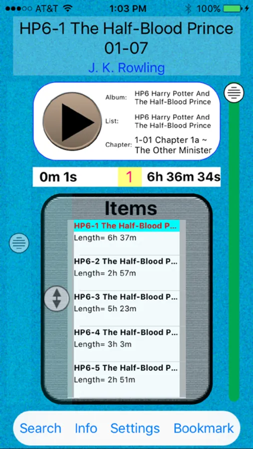 • Chapters: Fully implements the new m4b standard to display and select chapters within such audiobooks. One can now easily review the table of contents, jump to any chapter, move forward or back a chapter easily at any time.