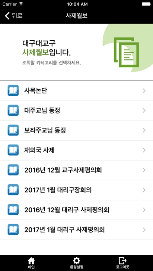 사목일정, 공지사항, 공문, 사제단, 사제월보, 회의록, 매일미사, 기도문, 본당