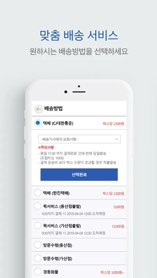 - 퀵서비스, 당일택배, 방문수령 등 내가 원하는 배송방법으로 빠르게 상품 수령 가능 - 업계 최초 온라인 문의 10분 답변 캠페인