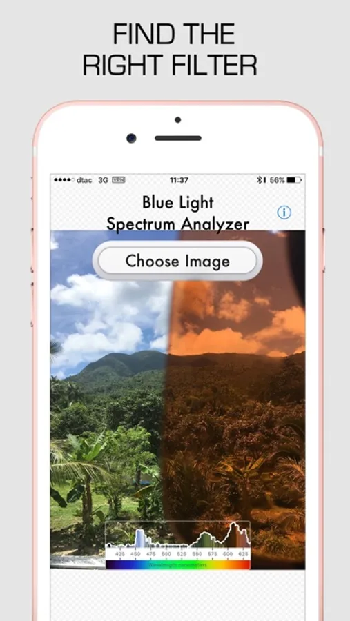 Analyze the photos with the Blue Light Spectrum Analyzer app